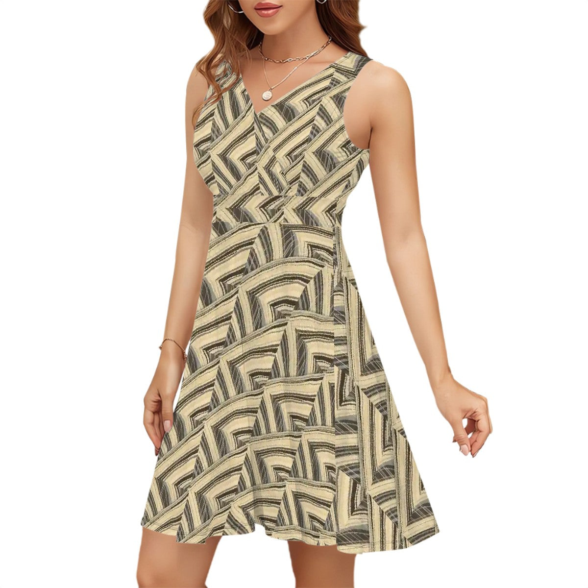 BabyGurl'z Collection Sleeveless V-Neck Dress - creative pinstripe patterns