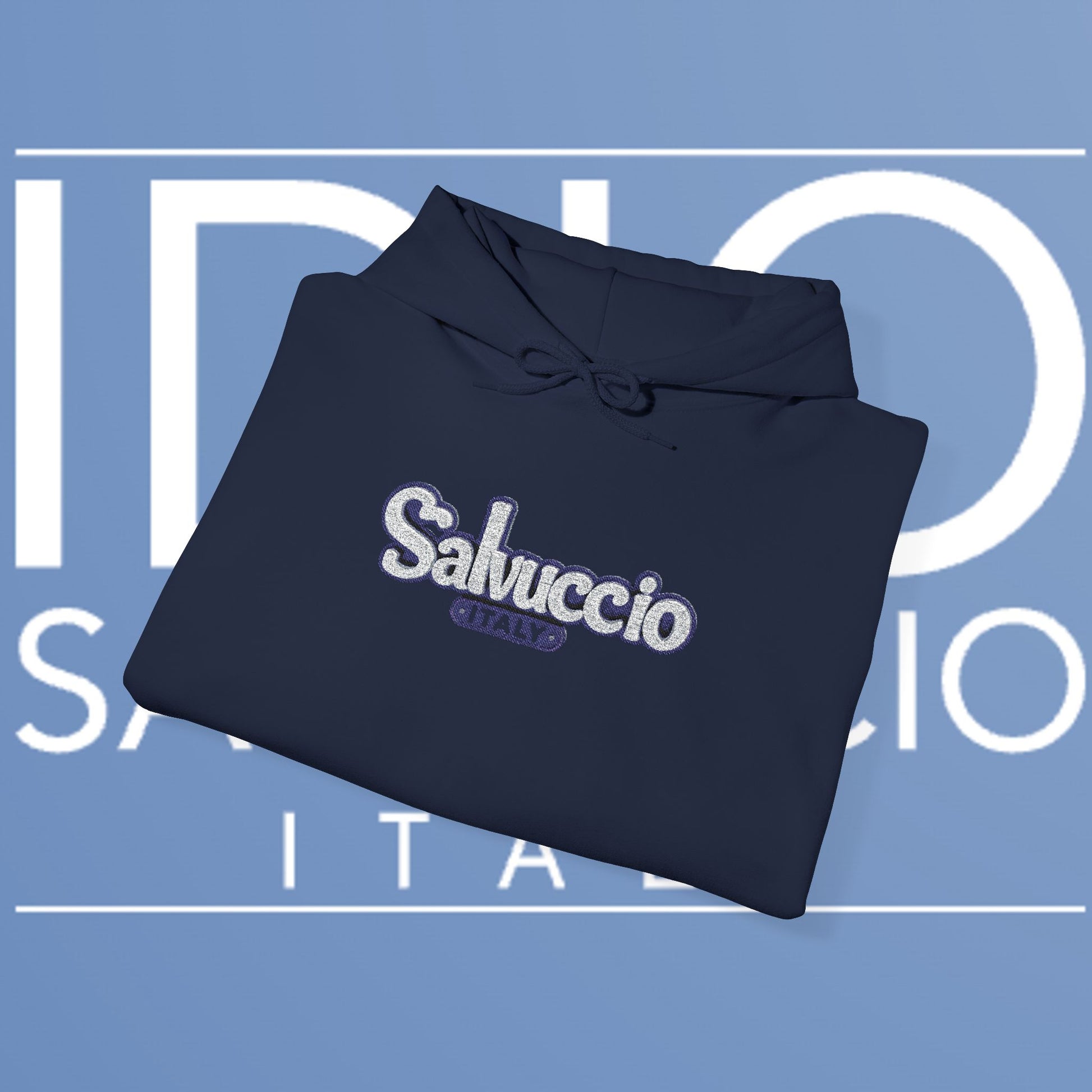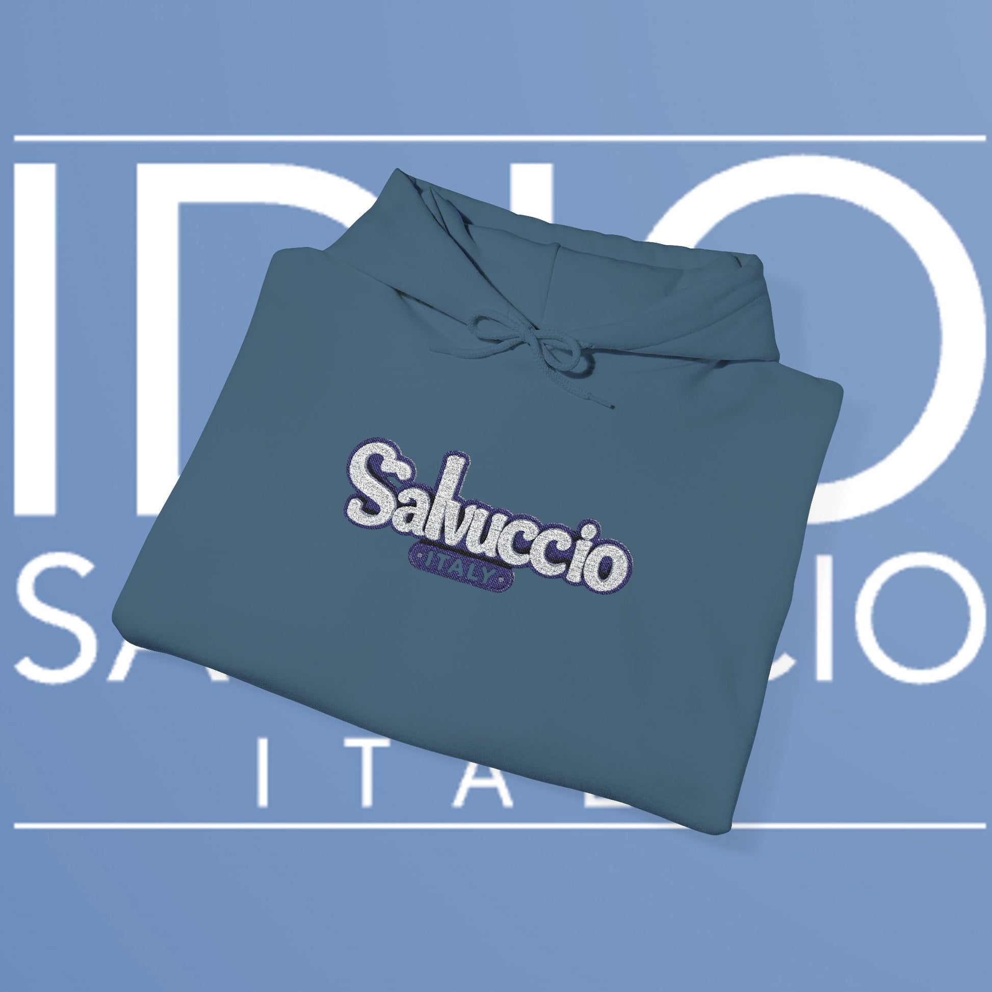The Idio Salvuccio Heavy Blend™ Embroidered Hooded Sweatshirt exudes a cozy and stylish vibe, perfect for chilly days and casual outings. It is relevant for adults looking for a comfortable and fashionable option for everyday wear. Ideal for holidays, casual occasions, and leisure activities.