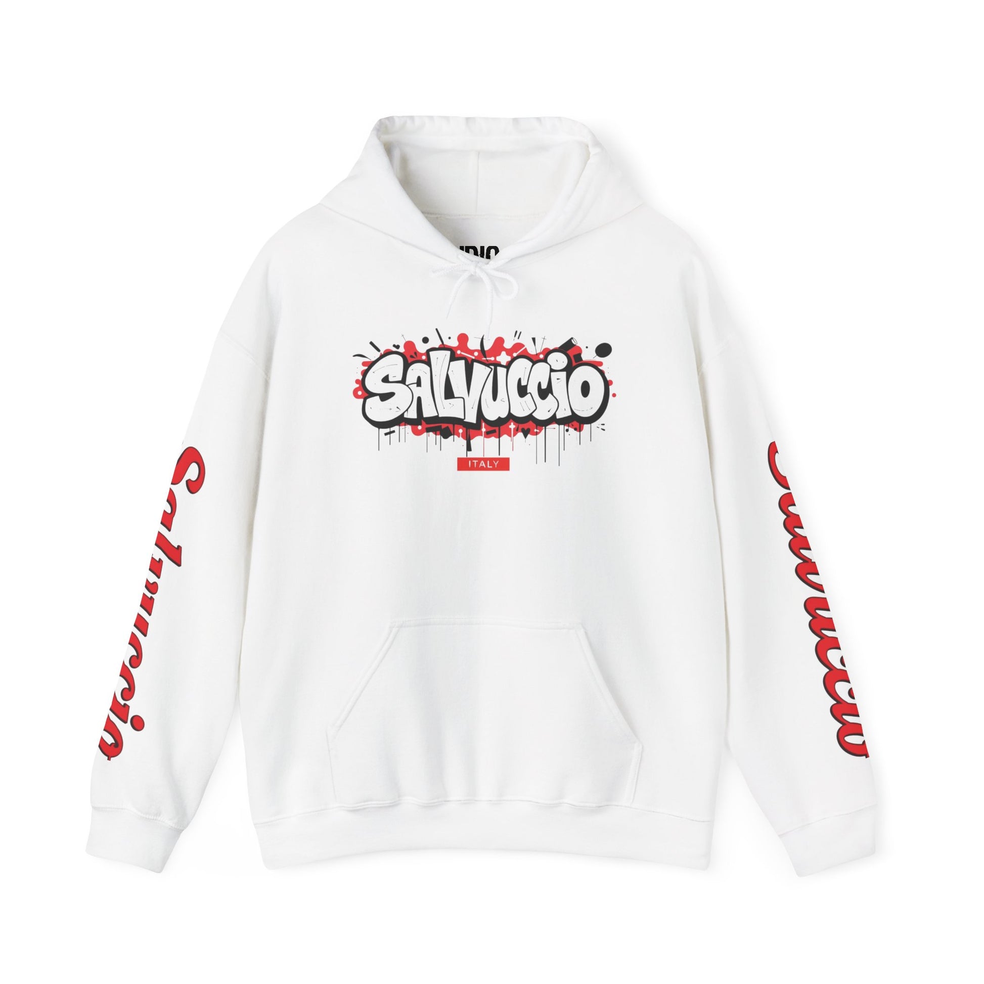Idio Salvuccio Graffiti Style Unisex Hoodie, perfect for streetwear enthusiasts looking for trendy casual outfits. Ideal as a gift for hip hop lovers, this hoodie exudes a cool and urban vibe that can easily be incorporated into everyday wardrobes. Relevant for street style fashion enthusiasts and those who appreciate unique and edgy designs. Suitable for casual wear, streetwear fashion, urban style, hip hop culture, and gifting occasions.
