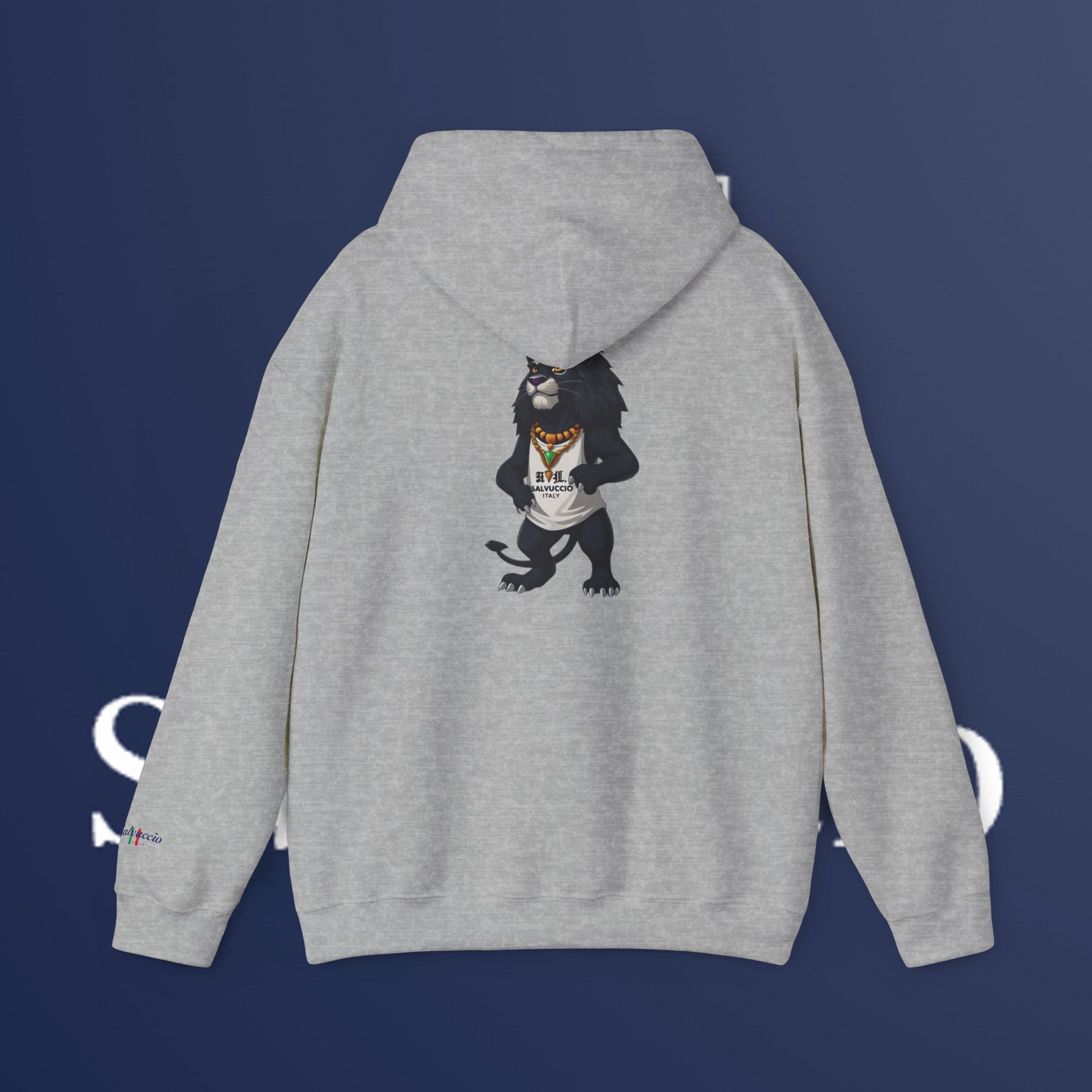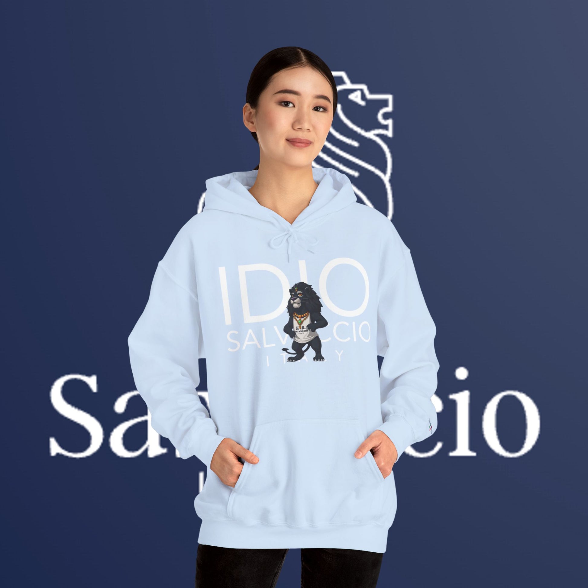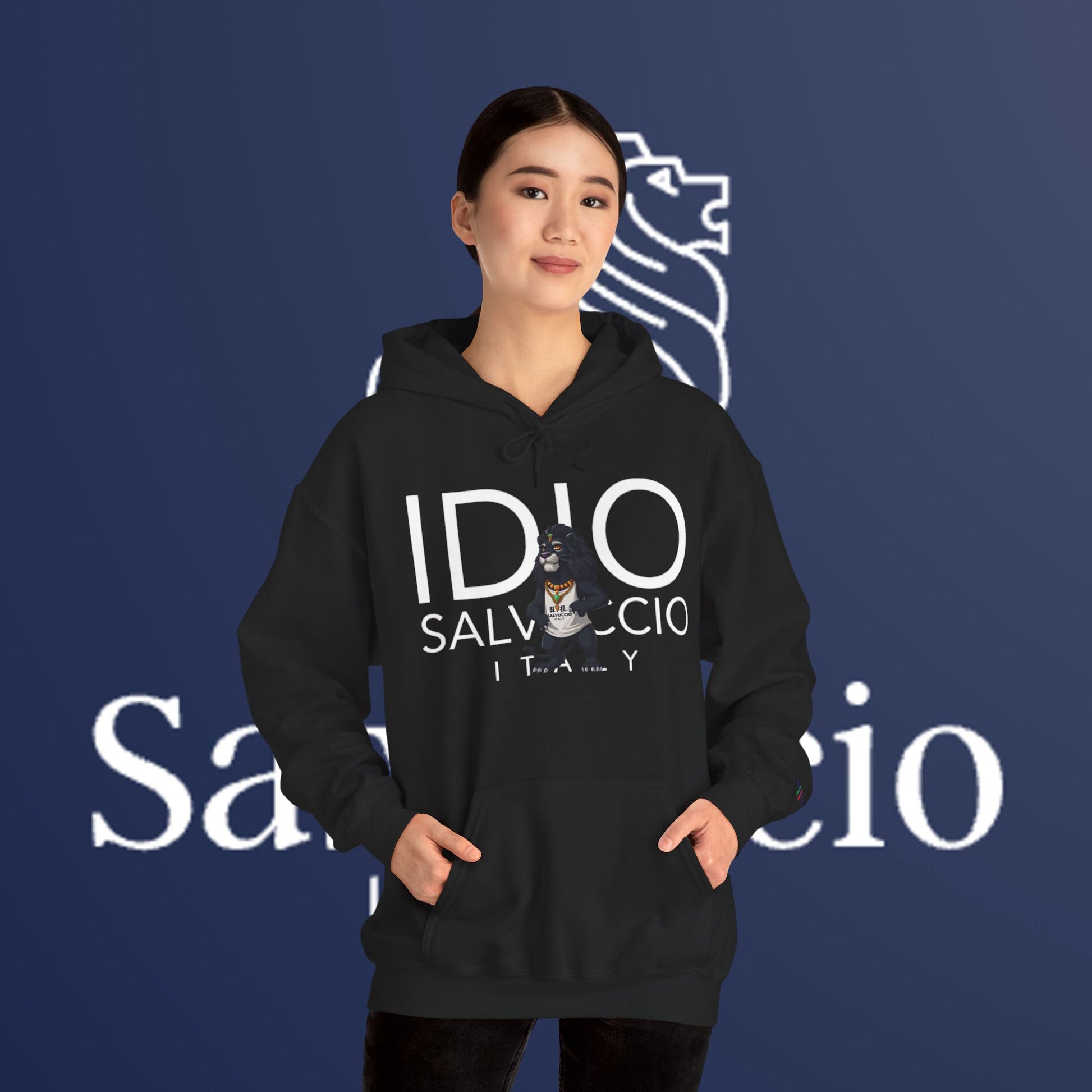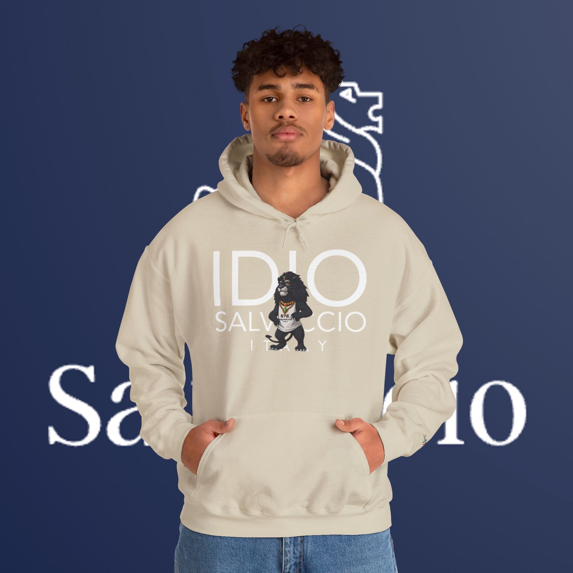 Stay warm and stylish with the Idio Salvuccio Lion Hoodie. This cozy and comfortable hoodie features a spacious kangaroo pouch pocket, adjustable drawstring hood, and a classic fit for a scratch-free wearing experience. Perfect for adults looking for a unique and warm hoodie to wear during colder months or as a casual statement piece. Ideal for gifting during holidays or special occasions.