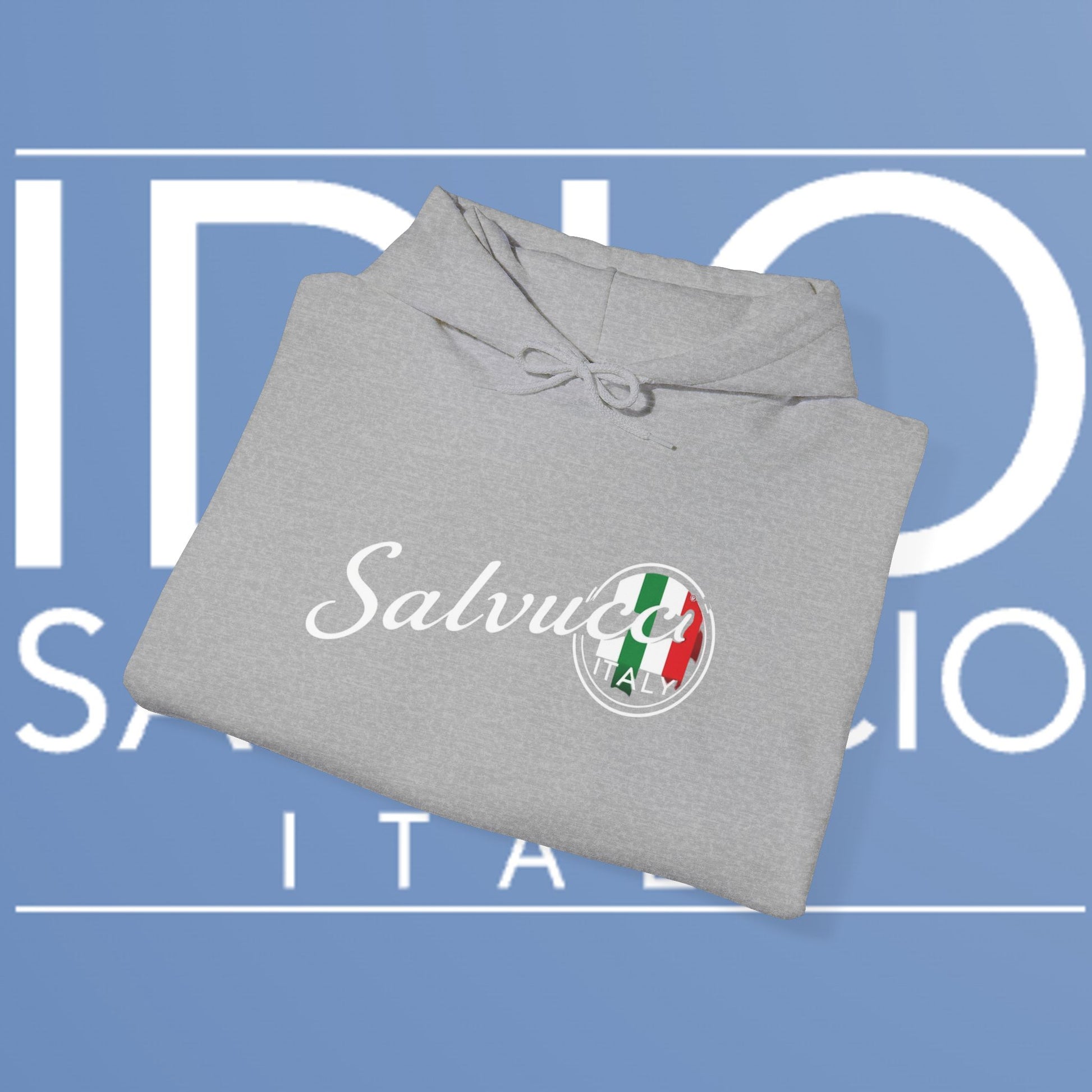 Stay warm and stylish with this Idio Salvuccio Italian Pride Soccer Hoodie. Perfect for casual wear, travel, or as a gift for him or her. This unisex fashion piece is a warm layering option with spacious pockets to keep your hands cozy. Ideal for adults looking for a comfortable and eye-catching garment.