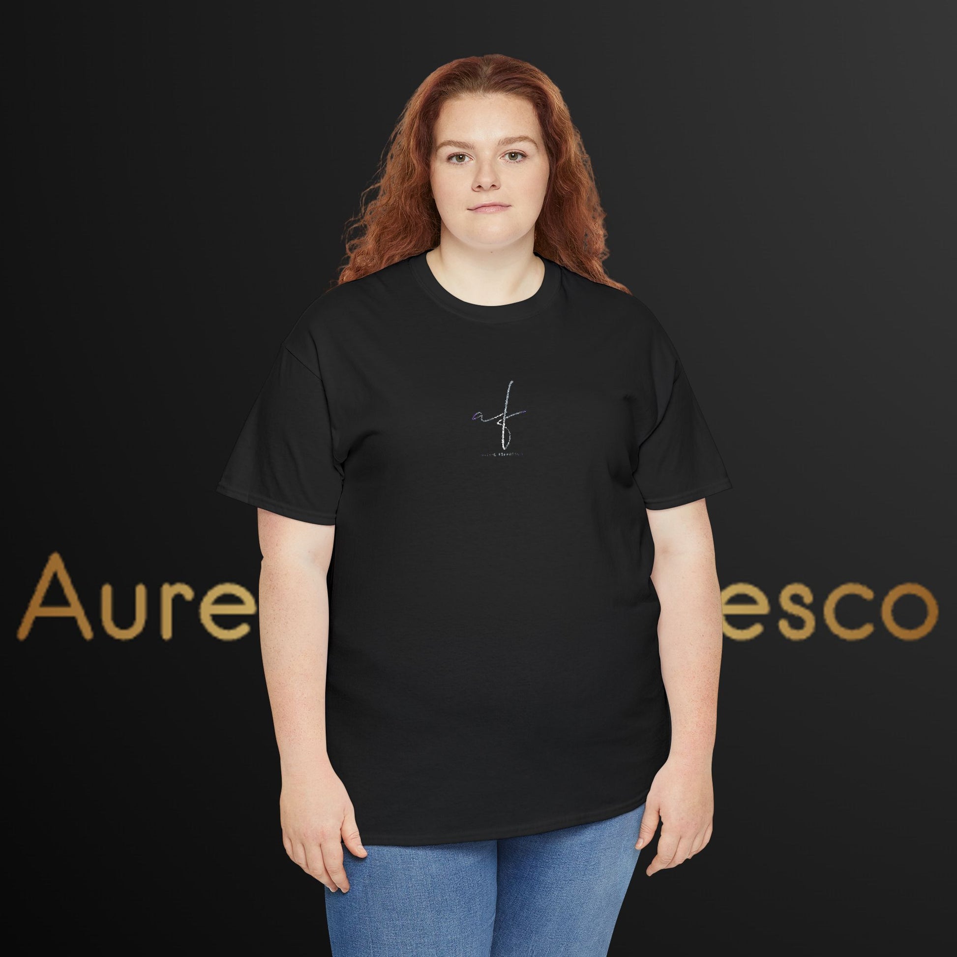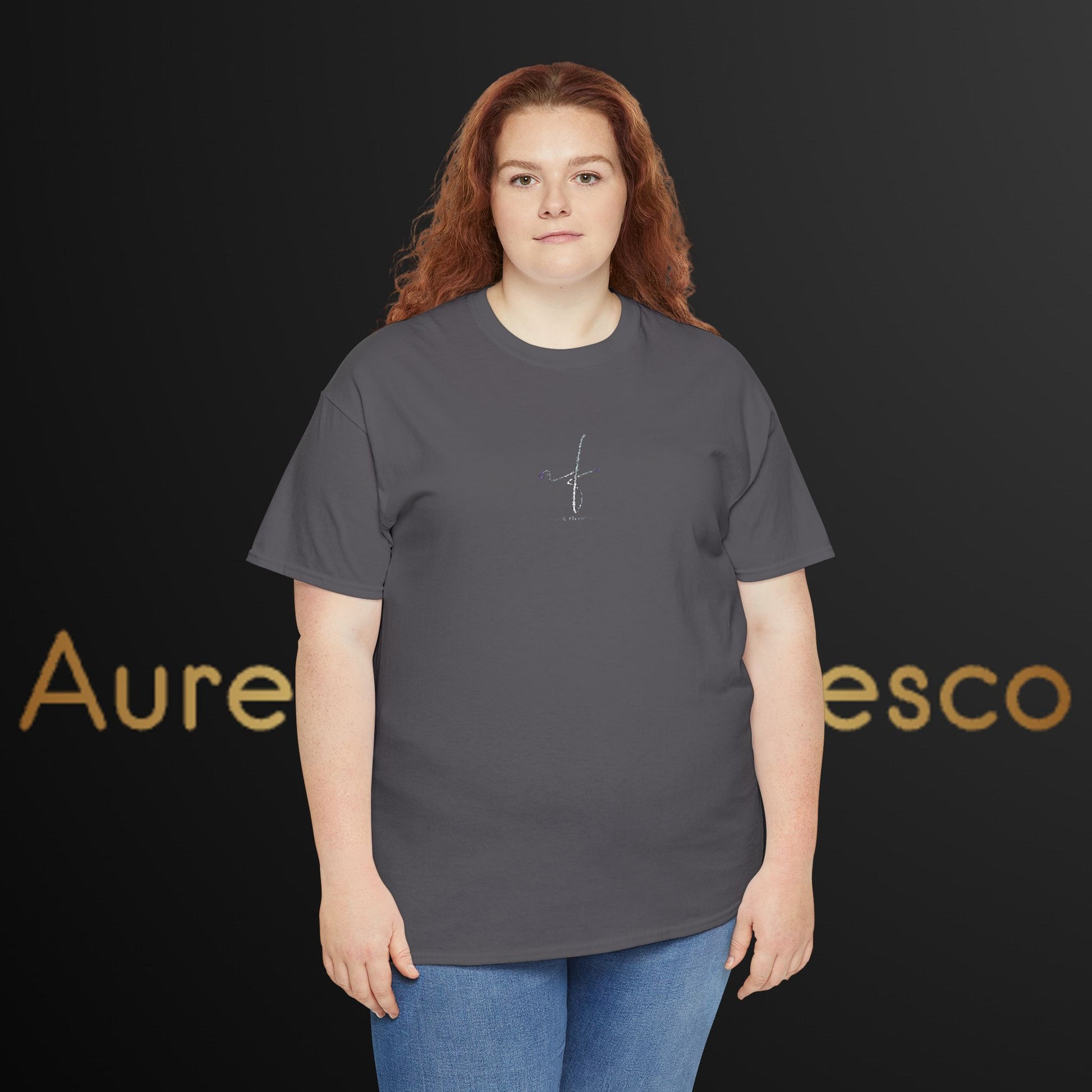 The Aurelio Francesco Signature Heavy Cotton Tee is a classic and comfortable shirt perfect for everyday wear. The heavy cotton fabric ensures durability and year-round comfort, while the ribbed knit collar and seamless design provide a neat and timeless look. This unisex tee is ideal for adults and is ethically made using 100% US cotton. Whether you're running errands or attending a casual event, this tee is a versatile wardrobe staple.